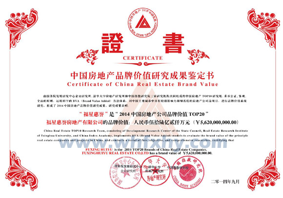 福星惠譽蟬聯(lián)“2014中國房地產(chǎn)專業(yè)領先品牌TOP10”品牌價值56.2億
