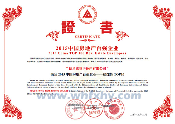 福星惠譽蟬聯(lián)2015中國房地產(chǎn)百強企業(yè)