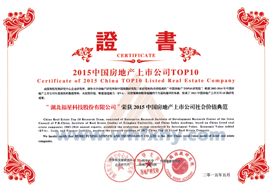福星股份蟬聯(lián)“2015滬深上市房地產(chǎn)公司財務穩(wěn)健性TOP10”