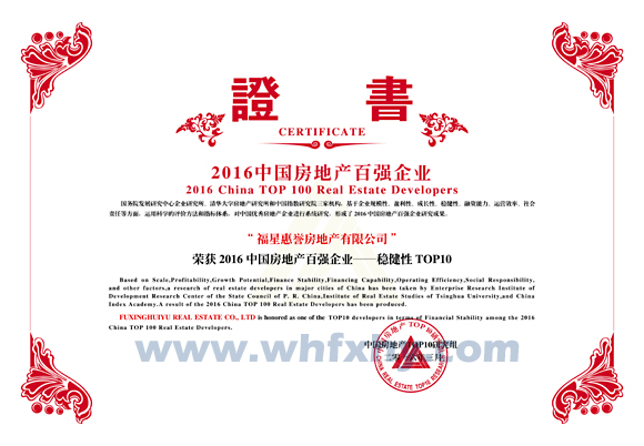 福星惠譽蟬聯(lián)2016年中國房地產(chǎn)百強