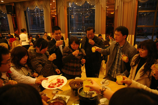 晚餐在咸寧的四星級(jí)酒店祿神大酒店。晚餐非常豐盛,魚肉、蔬菜、水果、甜點(diǎn)等應(yīng)有盡有。這時(shí)大家精神放松,談笑風(fēng)生,不亦樂(lè)乎,情緒與體溫一同上升。咸寧福星城的朱總等盡地主之誼,熱情陪同。而女士們則比午餐多了一些文雅與從容,細(xì)細(xì)品味佳肴。開(kāi)心則胃口大開(kāi),對(duì)女士們來(lái)說(shuō),吃不完的美食、飲不盡的酒水,難道不就是最貼心的節(jié)日犒賞嗎?