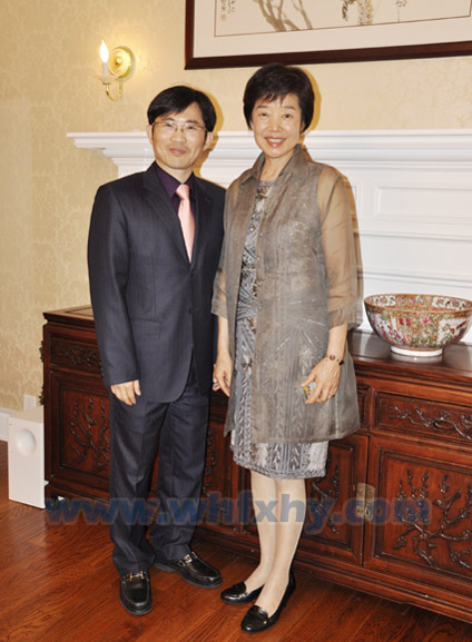 總經(jīng)理胡朔商與總領(lǐng)事劉健夫人陳小玲領(lǐng)事親切合影