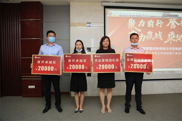 大會(huì)通報(bào)了2020年上半年經(jīng)營目標(biāo)總體完成情況及考核兌現(xiàn)內(nèi)容,由月亮灣壹號(hào)、東湖城拾光項(xiàng)目營銷總監(jiān)對(duì)項(xiàng)目首開分別進(jìn)行了復(fù)盤,從多角度分享了各自成功經(jīng)驗(yàn)和心得體會(huì)。會(huì)上對(duì)綜合完成率末位的項(xiàng)目也分析了具體原因,做了認(rèn)真的反思總結(jié)。隨后,董事長譚少群親自為2020年上半年的優(yōu)秀營銷團(tuán)隊(duì)頒發(fā)了獎(jiǎng)牌。